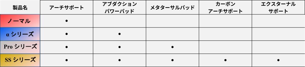 カンケルαは自社独自の設計による縦アーチ2か所、横アーチ1か所の3点のアーチサポートに加え、指を開き力を使いやすくするアブダクションパワーパッドを追加したNEWモデル。